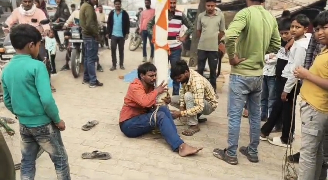 बस्ती… उत्तर प्रदेश नशे में धुत युवक को परिवारजनों ने दी तालीबानी सजा। घर के सामने बिजली के खंभे से युवक को दिया