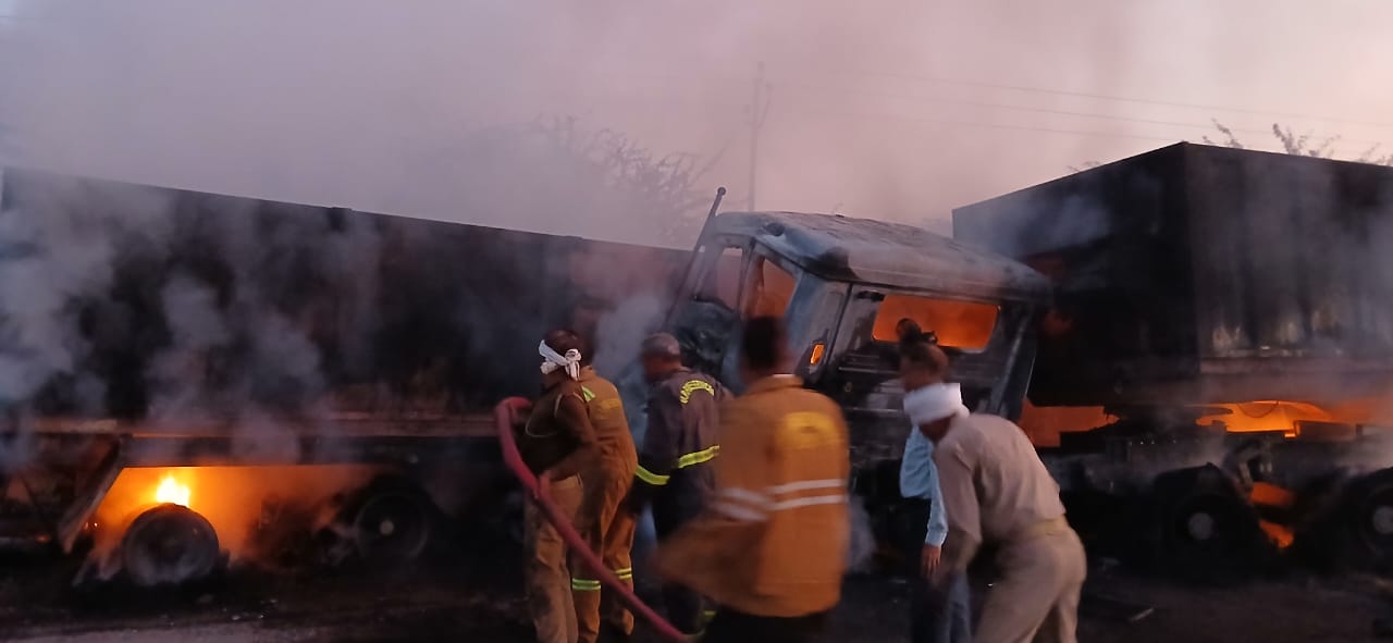दो ट्रकों के आपसी टक्कर में लगी आग तीन की मौत।