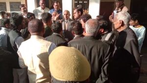 परिसर मे मौजूद अधिवक्ताओं ने जज को लेकर सौपा पुलिस को अधिवक्ता संघ ने शहर कोतवाली में दी तहरीर