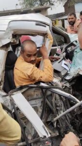 कार में 11 बालिका क्रिकेट खिलाड़ी सहित 13 लोग थे सवार, ड्राइवर सहित एक महिला कोच की हालत गम्भीर,