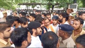 करणी सेना ने किया पुलिस अधिक्षक कार्यालय का घेराव