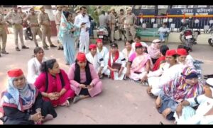 समाजवादी पार्टी की महिला विंग जीपीओ पर बैठी धरने पर