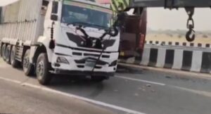 ड्राइवर को झपकी आने से सीमेंट लदा ट्रक अनियंत्रित होकर दूसरी लेन में घुसा,