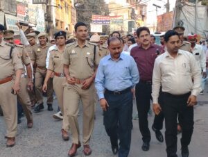 आगामी त्यौहारों के दृष्टिगत गैस चैराहा से सदर कोतवाली तक निकाला गया रूटमार्च।