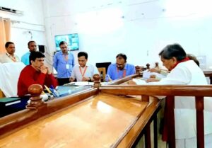 माल्यार्पण के पश्चात डीएम कार्यालय पहुँच कर किया नामांकन।